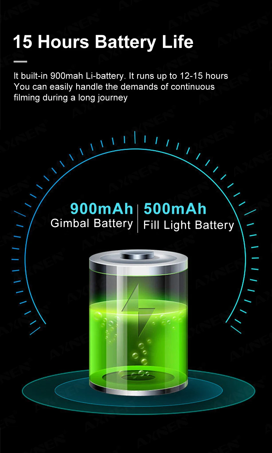 lt built-in 900mah Li-battery. It runs up to 12-15 hours.You can easily handle the demands of continuous filming during a long journey.
