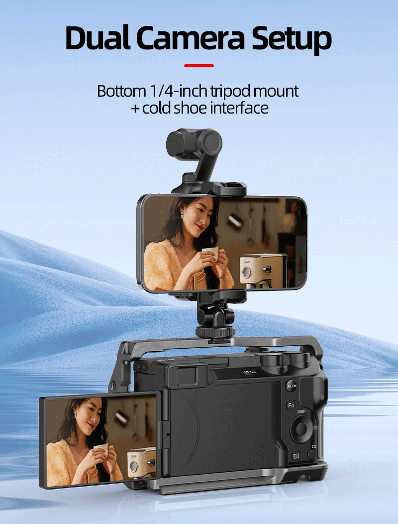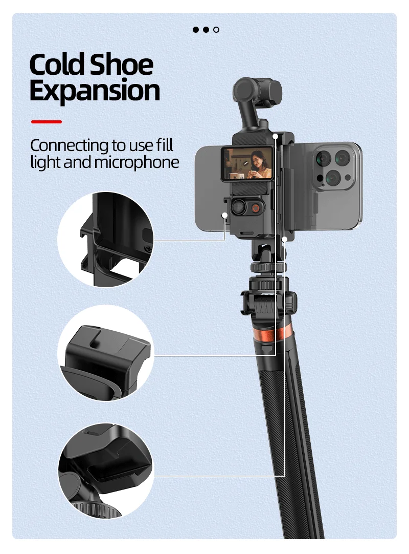 4. 1/4 thread can be matched with tripod and extension rod, cold shoe interface can be connected to the microphone, fill light,
