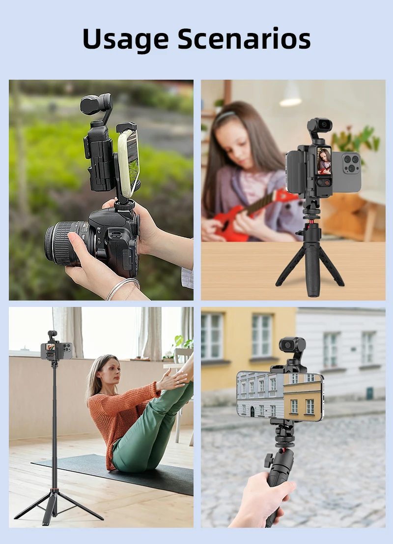 Camera Holder Teleprompter for OSMO Pocket 3 Tripod Phone Stand Expansion Bracket Fill Light 1/4 Gimbal for Accessories